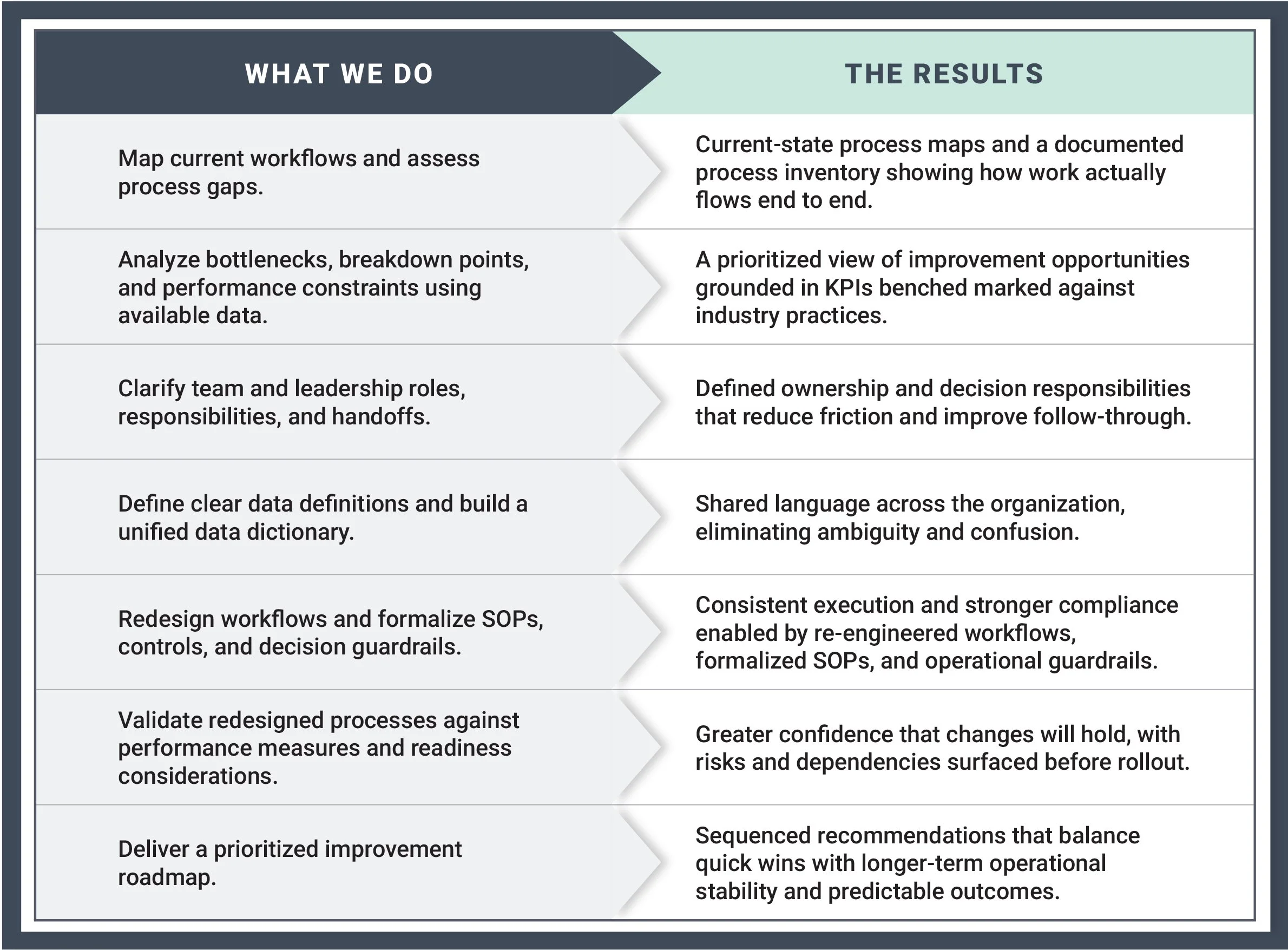 Reverse operational friction by mapping workflows, defining capabilities, and redesigning processes to reveal high-impact opportunities for better controls and stronger execution.